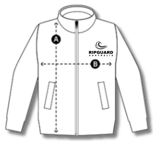 | Size Chart Measurements shown in the chart reflect the size of the garment; not the wearer. Length (A): high point on shoulder hem to bottom hem on the back. Width (B): side to side just below the sleeves (when placed flat).
